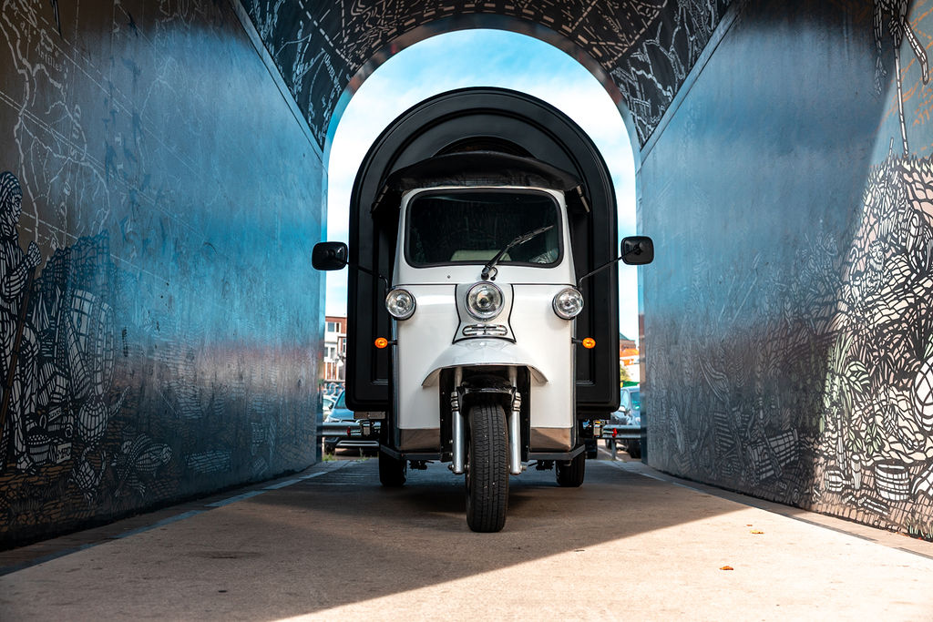 De eFoodTuk is een toekomstbestendige, volledig elektrische foodtruck die de kracht en functionaliteit van een full-size foodtruck combineert met duurzame mobiliteit en opvallend design, klaar voor smalle straten, drukke events en zero-emissiezones.