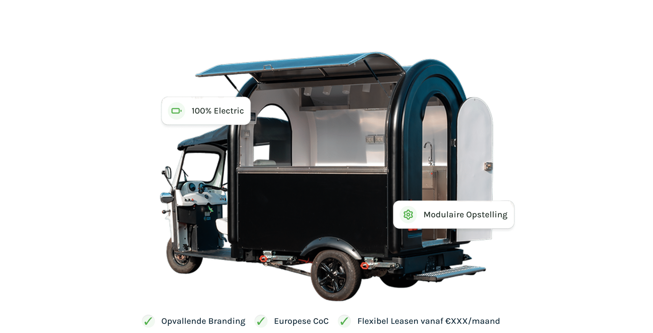 Een elektrische, modulaire foodtruck die zich volledig aanpast aan jouw concept – van streetfood tot retail, en alles daartussen.